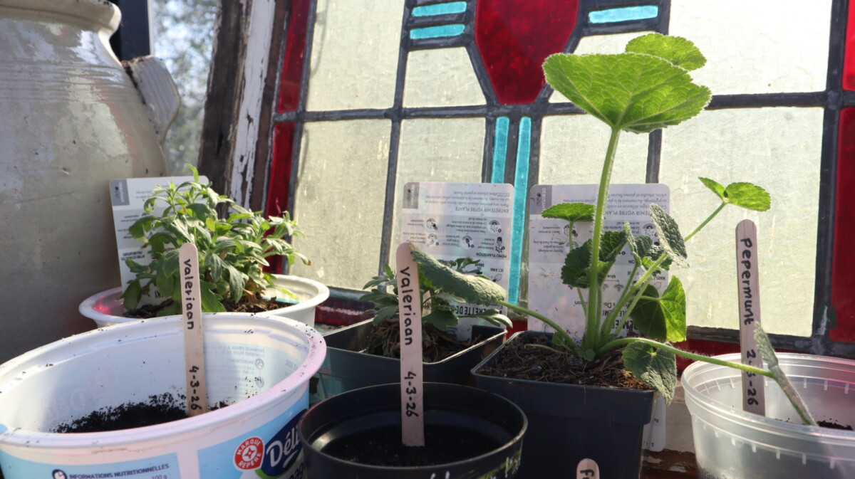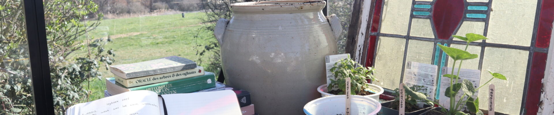 Dit jaar neem ik eindelijk mijn pas gebouwde kas in gebruik. Ik krijg van allerlei mensen zaden, zaaitafels en met mijn ouders bouw ik een (extra hoge) oppottafel. De laatste weken ben ik hier te vinden. Het zaaigoed schiet uit de grond en het lijkt wel alsof het voelt dat het een mooie bestemming heeft, want de opkomst is veel groter dan vorig jaar toen ik alles over het hele terrein verspreid achter glas plaatste.