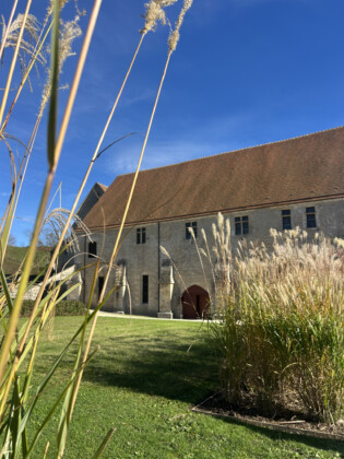 The gardens were redesigned a few years ago by landscape architect Gilles Clément. Tall pampas grass connects the abbey to the surrounding landscape. At the back of the abbey, you will find a long avenue lined with lime trees — old trees watching over the large grassy field.