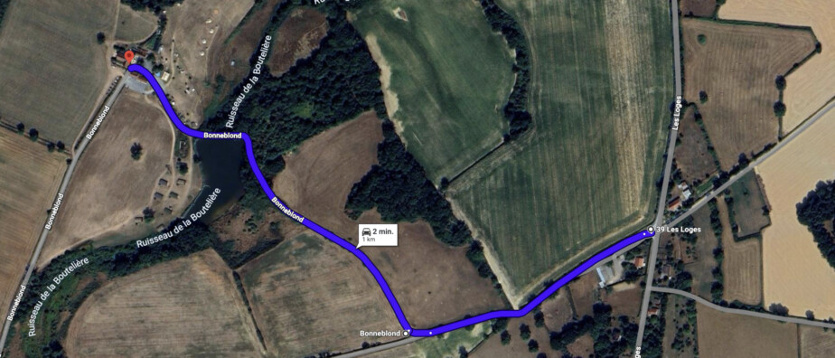 Dit is de officiële aanrijroute van Bonneblond en loopt via het meer. Deze route bevat een extra uitdaging met een passage door een riviertje. Let op: kom je met een grote camper of caravan, dan kan deze route lastig zijn.